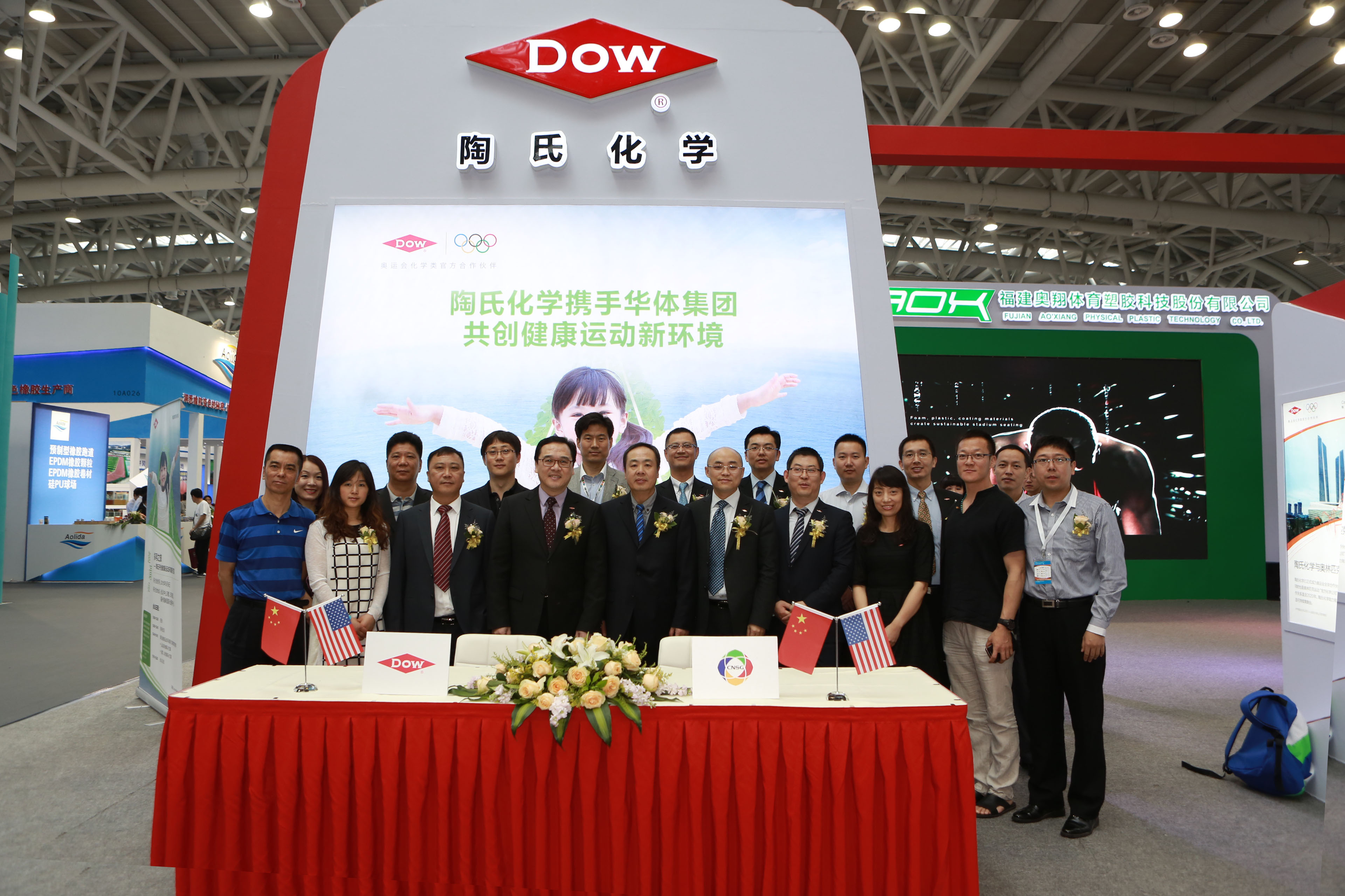 除了集中展示陶氏化学开创的健康运动环境新方案与各类配套本地化服务与支持外,在为期四天的展会期间,陶氏还举办了两场重要的战略性合作活动,为拓展合作范围,在中国市场进一步的深耕做出积极部署。